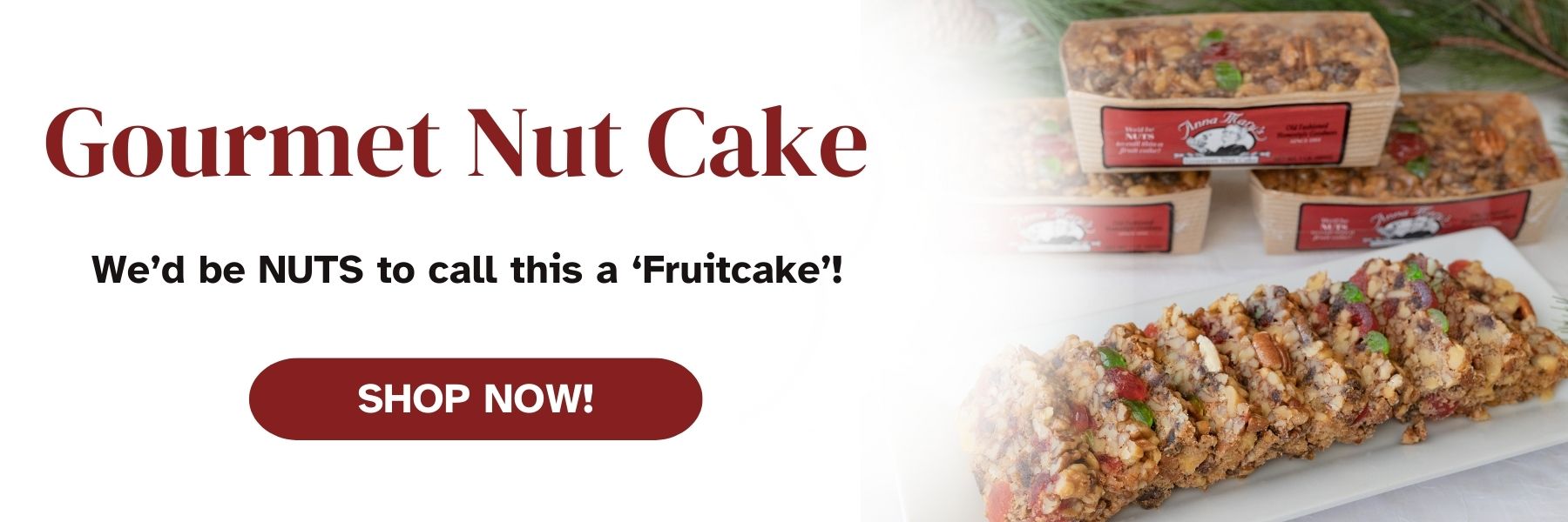 Give the gift of old-fashioned, homestyle goodness to your loved ones. Choose from our gourmet gift boxes featuring our Nut Cakes, or add on decorative holiday tins and gift boxes to your Nut Cake Order.